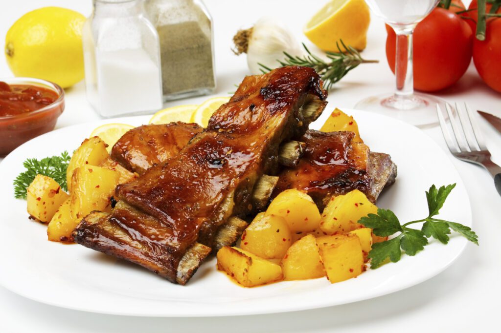 8. Sirve el asado de tira caliente y acompáñalo con tus guarniciones favoritas, como papas asadas o ensalada.